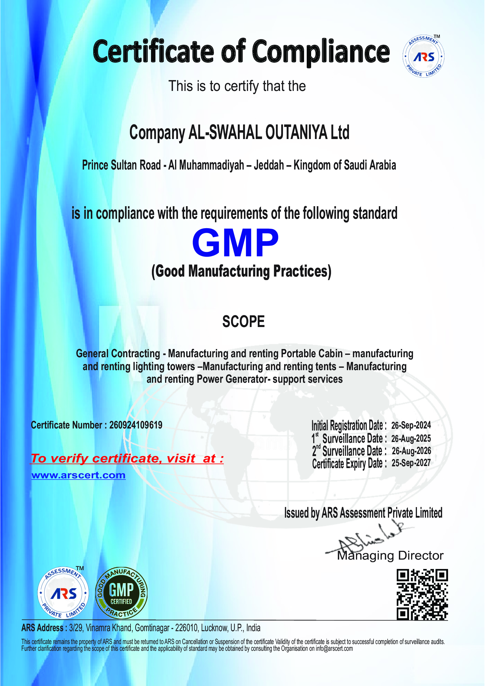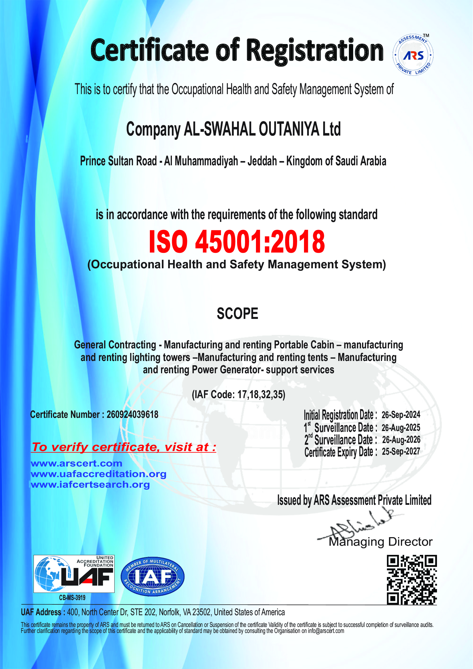 “نلتزم بتقديم خدمات مساندة متكاملة وذات جودة عالية تساهم في تحقيق أهداف مشاريع عملائنا بكفاءة وفعالية. نسعى لبناء شراكات طويلة الأمد قائمة على الثقة والشفافية، مع الالتزام بتطبيق أفضل الممارسات المهنية، وضمان بيئة عمل آمنة ومستدامة تساهم في تطوير المجتمعات التي نخدمها.